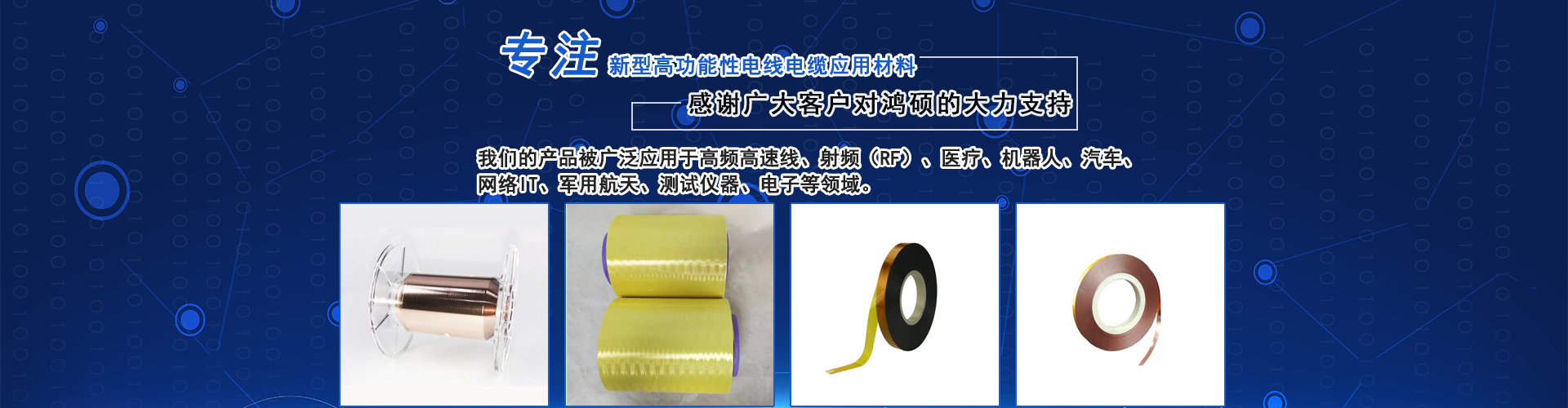 東莞市鴻碩材料科技有限公司是壹家專業從事新型高功能性電線電纜應用材料的科技公司。我們的產品和服務為客戶提供更高功能的材料,讓客戶的終端產品具有更強大優異的功能來應對新興需求,承受更苛刻的信賴性測試,耐受更為惡劣環境,具有更長的產品壽命,遠超同行的產品性價比。我們的產品被廣泛應用于高頻高速線、射頻(RF)、醫療、機器人、汽車、網絡IT、軍用航天、測試儀器、電子等領域。 基于我們強大的新材料研發能力和多項領先的行業優勢技術,我們將以新型材料的應用服務為方向,以提升客戶價值為已任,快速持續提升產品性能、質量和服務水平,為客戶提供更具有挑戰性競爭力的堅強后盾。